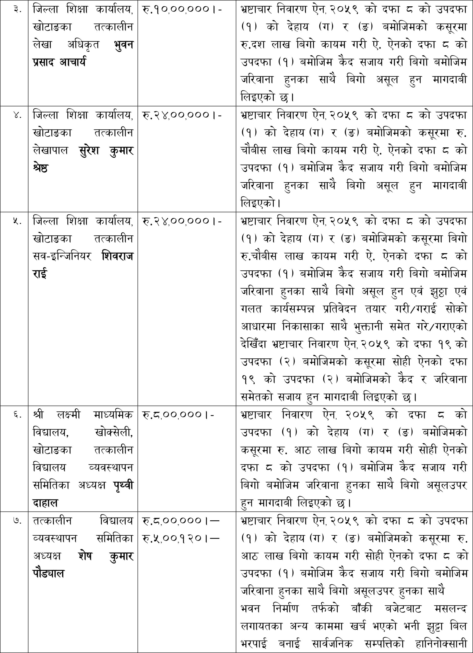 खोटाङका तत्कालीन तीन जिल्ला शिक्षा अधिकारी विरुद्ध भ्रष्टाचार मुद्धा