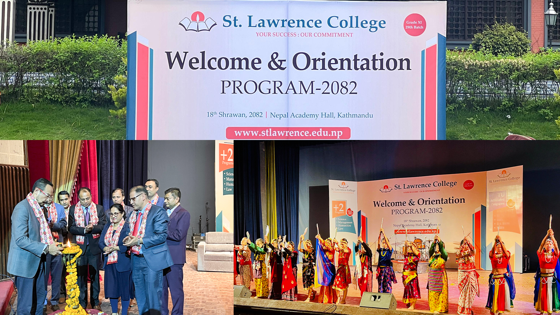 कार्यक्रममा कलेजका प्रिन्सिपल ताराप्रसाद सुवेदीले कक्षा ११ का विद्यार्थीलाई स्वागत गर्दै अबको दुई वर्ष जीवनकै अविस्मरणीय हुने बताए । ‘तपाईंहरु थुप्रै वर्ष स्कुले जीवन पार गरेर शिक्षाको नयाँ यात्रा शुरु गर्नुभएको छ,’ उनले भने, ‘यो यात्रामा तपाईंहरुलाई साथ दिन सेन्ट लरेन्स कटिबद्ध भएर लाग्ने प्रण गर्दछु ।’